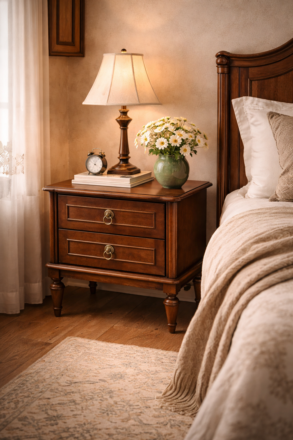 Klasik tasarım çizgileri ve zarif ayak formuyla öne çıkan bu 2 çekmeceli komodin, yaşam alanlarına estetik bir dokunuş kazandırır.
