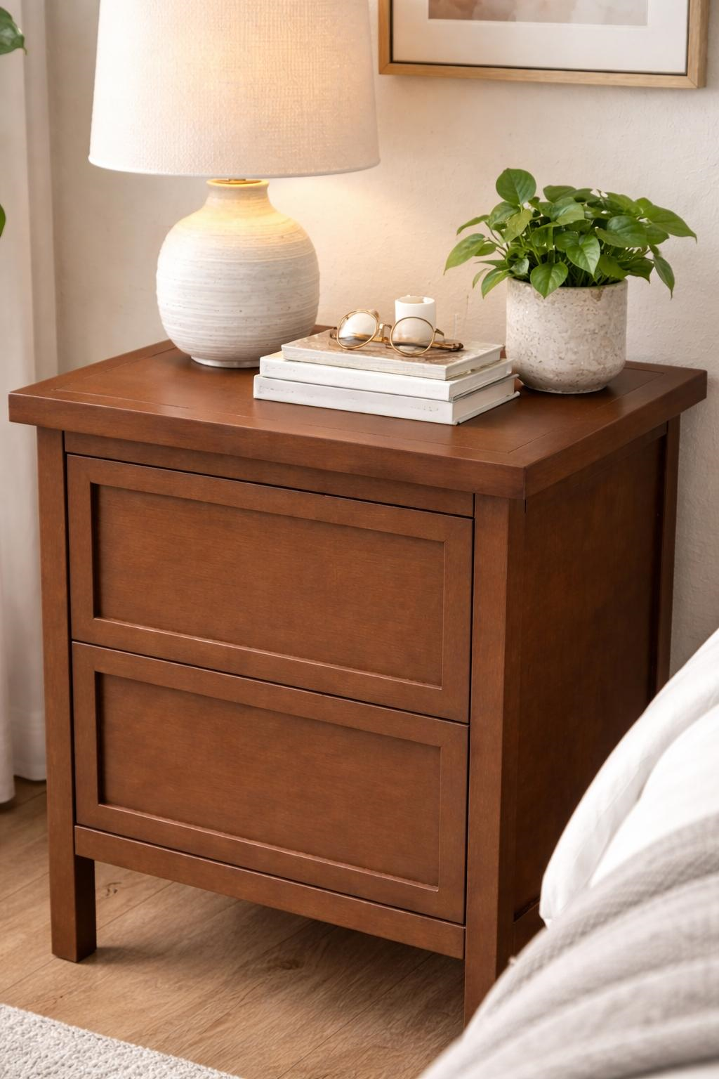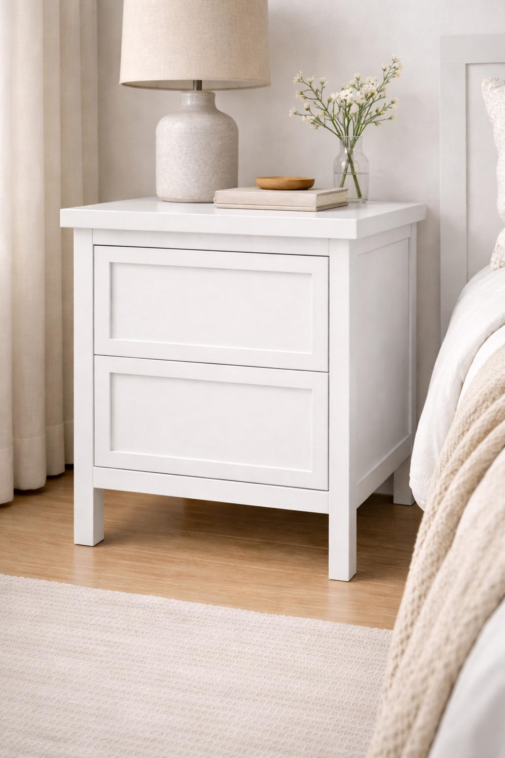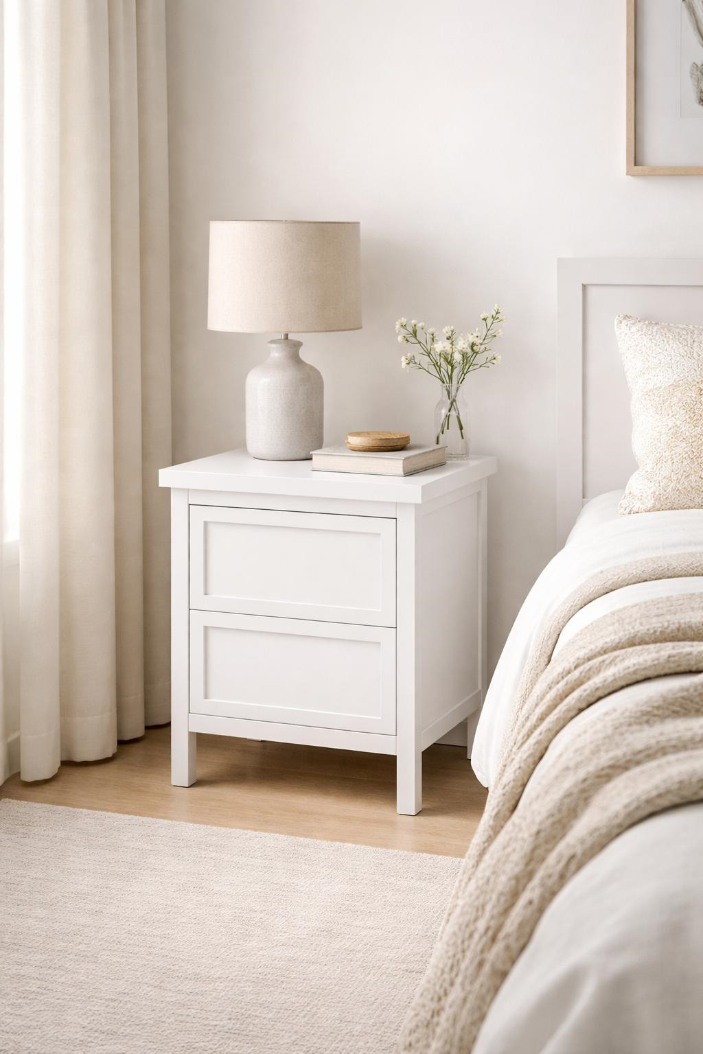 Minimal ve zamansız tasarımıyla dikkat çeken bu 2 çekmeceli komodin, yatak odanızın tamamlayıcı parçası olmaya adaydır. 55 cm genişlik ve 65 cm yükseklik ölçüleri sayesinde hem dar hem geniş alanlarda rahat kullanım sağlar.Salon ve yaşam alanları için seçili ürünleri sehpa kategorimizde inceleyebilirsiniz.