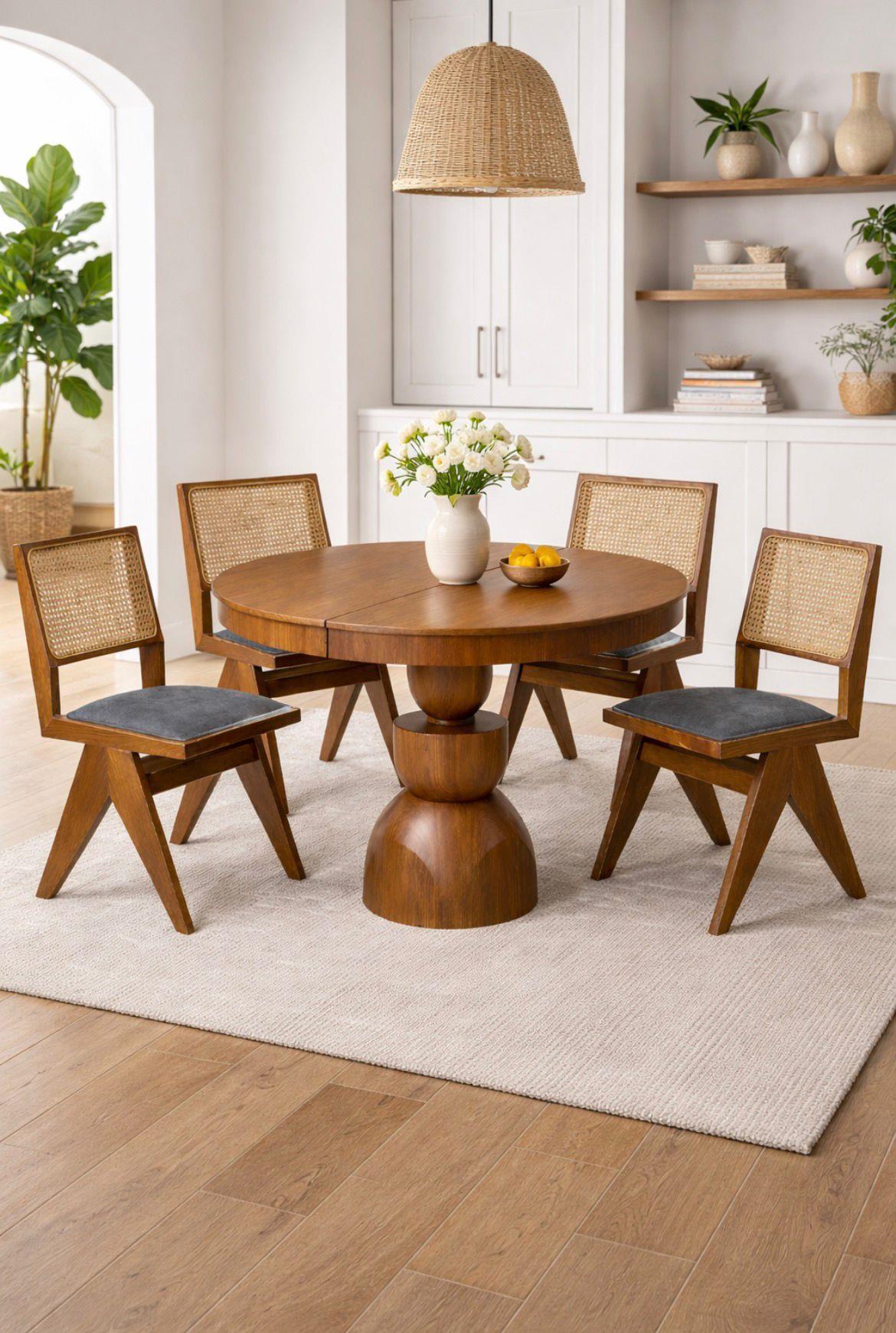 Takımda yer alan sandalyeler, tamamen kayın ağacından imal edilmiştir. Sırt kısmındaki doğal hasır örgü detayları ferah bir görünüm sunarken, oturum kısmındaki konforlu minderler uzun süreli oturumlarda dahi rahatlık sağlar. Bu hasırlı sandalye takımı, mekanınıza doğal ve sıcak bir enerji katar.