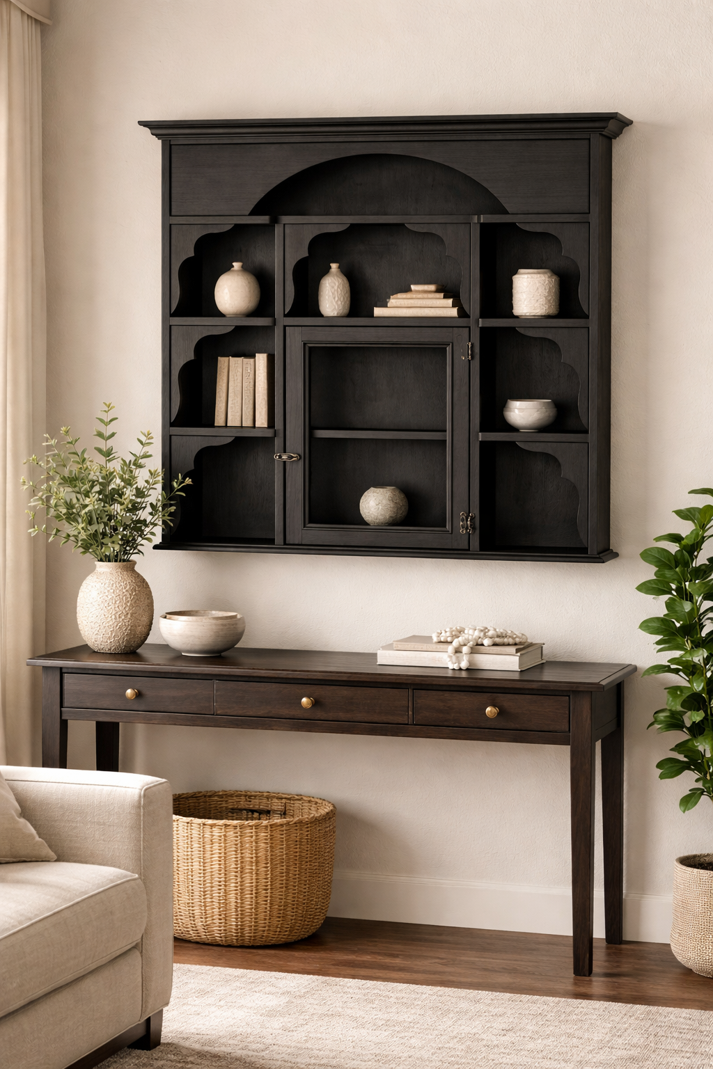 Alberohome dekoratif duvar raflı dolap, klasik detayları modern çizgilerle buluşturan özel bir tasarıma sahiptir. Çok bölmeli yapısı sayesinde dekoratif objelerinizi sergileyebilir, günlük eşyalarınızı düzenli bir şekilde saklayabilirsiniz. Ortadaki kapaklı bölme ile hem açık hem kapalı depolama alanı sunarak fonksiyonelliği artırır. 89 cm genişliği ve 96 cm yüksekliği ile ideal ölçülere sahip olan bu dolap, özellikle salon, mutfak, antre veya çalışma alanlarında kullanıma uygundur. Duvara monte edilebilir yapısı sayesinde yer tasarrufu sağlarken, bulunduğu ortamda düzenli ve estetik bir görünüm oluşturur. Zarif kavis detayları ve bölmeli tasarımı ile dekorasyona karakter kazandıran bu ürün, hem klasik hem modern dekorasyon tarzlarıyla uyum sağlar. Dayanıklı malzeme yapısı sayesinde uzun yıllar güvenle kullanılabilir. Alberohome güvencesiyle üretilen bu çok amaçlı dolap, hem işlevselliği hem de estetik görünümü ile fiyatını hak eden kaliteli bir mobilya tercihidir..Daha fazla özgün ve modern tasarım Albero Home koleksiyonunda keşfedebilirsiniz.