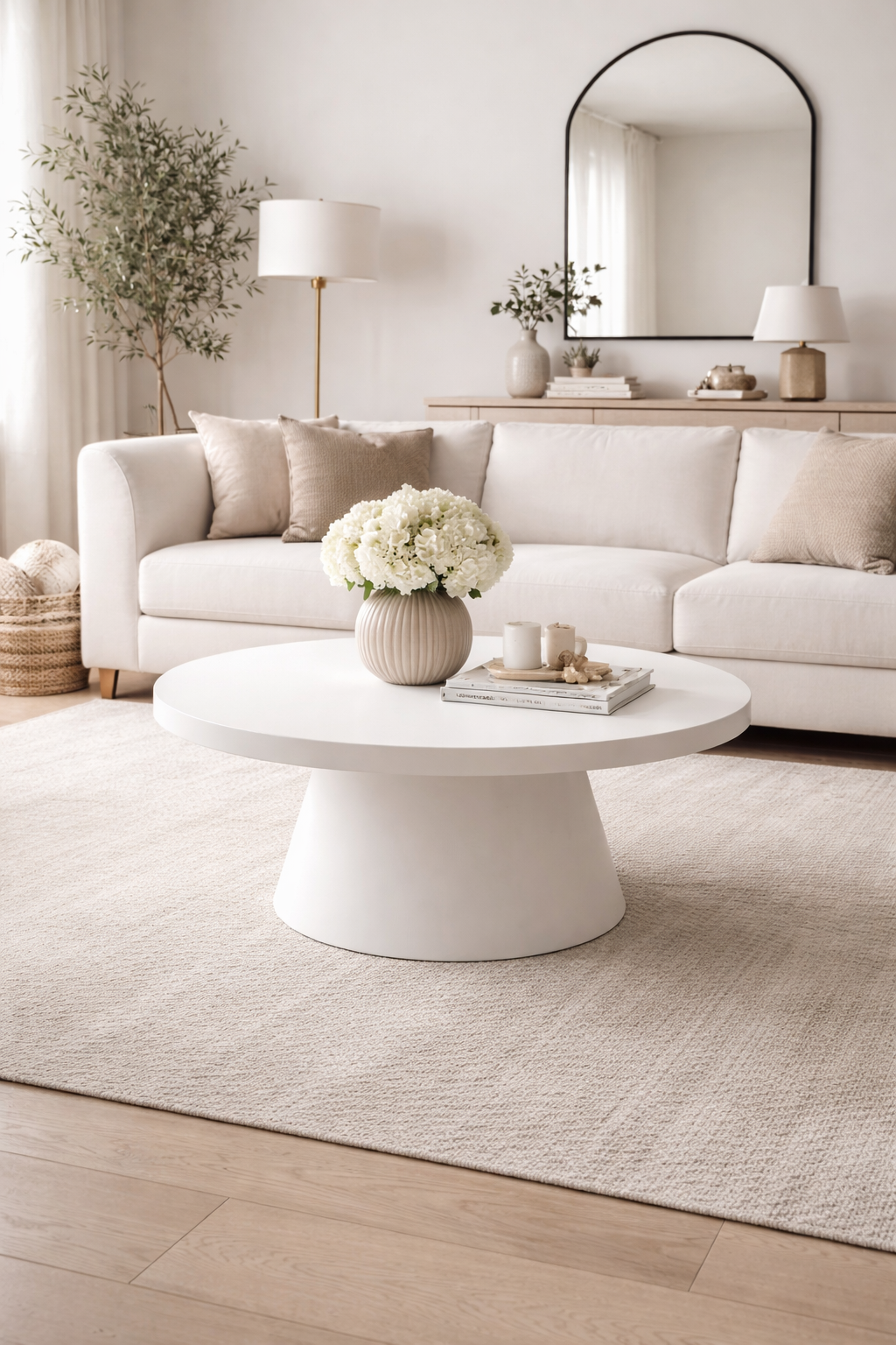 Ürün Özellikleri ✔️ Ürün Türü: Orta Sehpa ✔️ Form: Yuvarlak ✔️ Renk: Beyaz ✔️ Genişlik: 80 cm ✔️ Yükseklik: 48 cm ✔️ Malzeme: Dayanıklı MDF / Ahşap yapı ✔️ Minimal ve modern tasarım ✔️ Sağlam ve dengeli ayak yapısı ✔️ Kolay temizlenebilir yüzey ✔️ Salon ve oturma odası kullanımına uygun