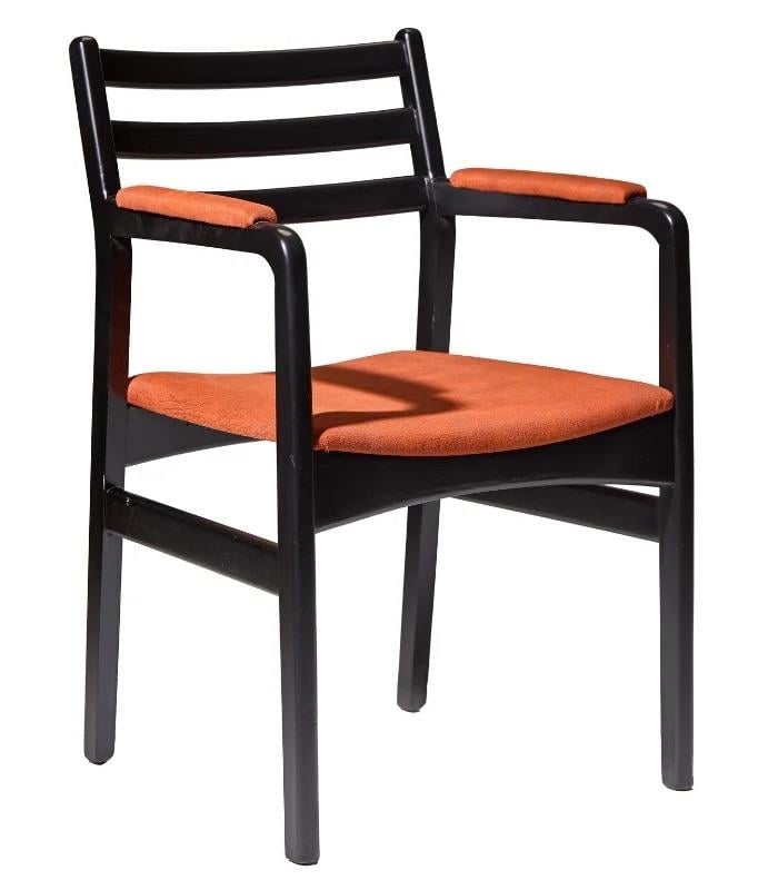 Capri sandalye, sade ve modern tasarımıyla mekânlarınıza sıcaklık katıyor. Siyah zarif gövdesi, turuncu tonlardaki yumuşak kumaş döşemesiyle dikkat çekerken, ergonomik oturum yapısı sayesinde uzun süreli kullanımlarda bile konfor sağlar.