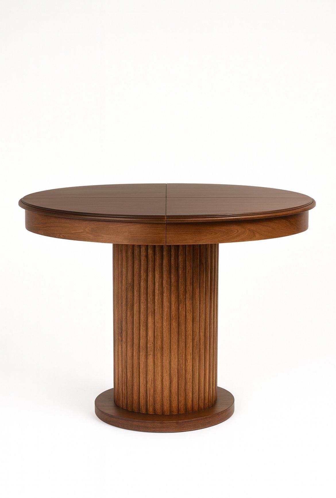 Masanın kapalı ölçüsü 100×100 cm, açık ölçüsü 100×135 cm olup açılır mekanizması son derece sağlamdır. Üst tabla kayın kaplamalı MDF yapısıyla hem estetik hem dayanıklı bir yüzey sunarken, orta ayakta kullanılan kayın torna çıta detayı tasarıma karakter katar.