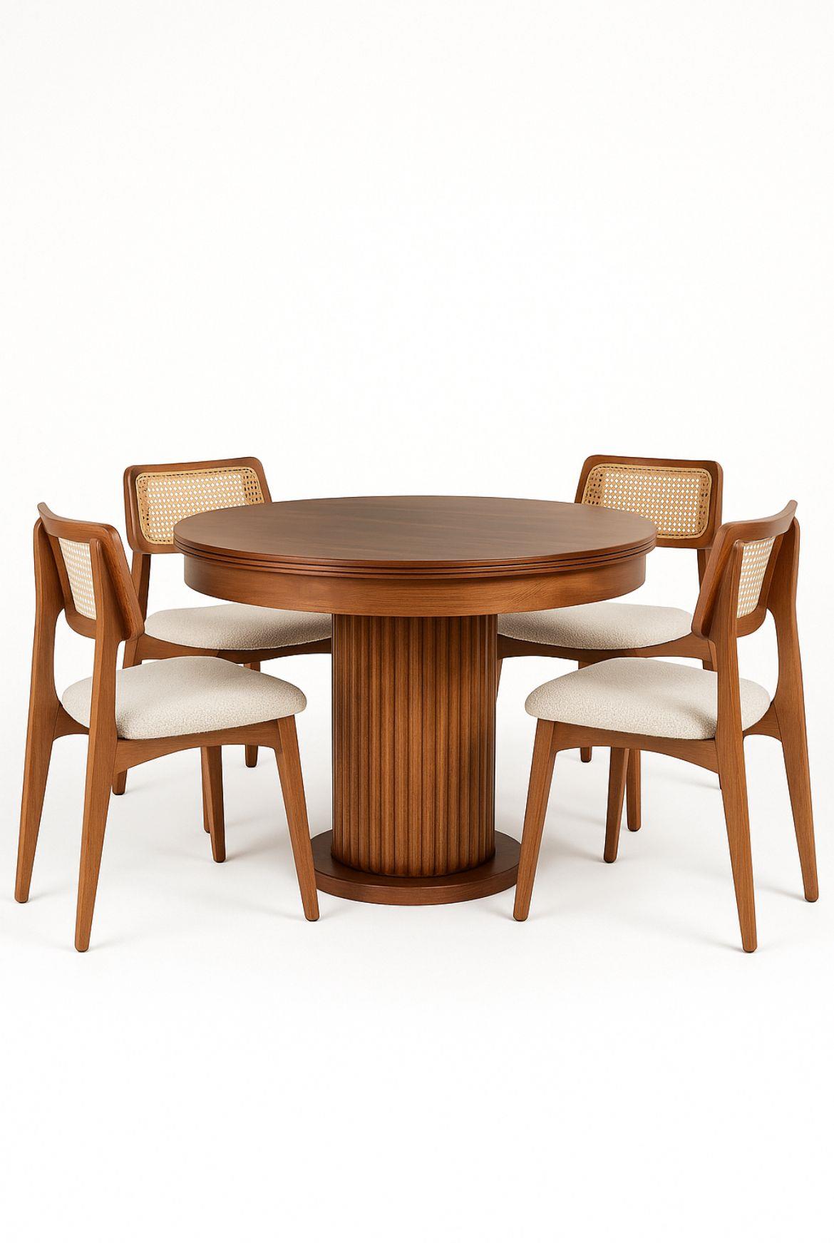Doğal kayın ağacının sıcak dokusunu modern çizgilerle buluşturan bu açılır masa takımı, hem günlük kullanım hem de misafir ağırlamak için ideal genişliği sunar.