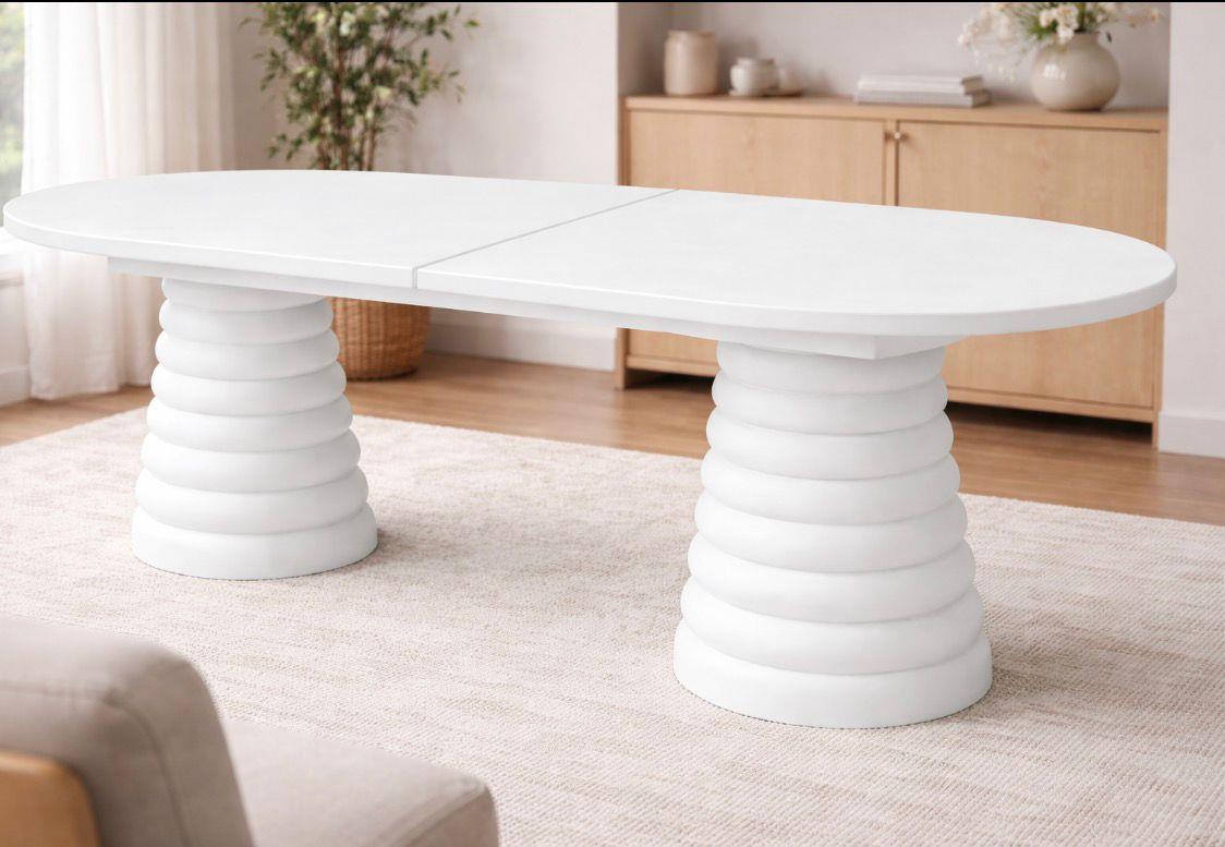 LUNA RING 160 oval açılır yemek masası, modern tasarım çizgileriyle estetik ve fonksiyonelliği tek formda birleştirir. Oval tabla yapısı mekânda yumuşak ve dengeli bir görünüm oluştururken, özel tasarım konik ring ayak yapısı masaya güçlü, karakterli ve heykelsi bir duruş kazandırır.