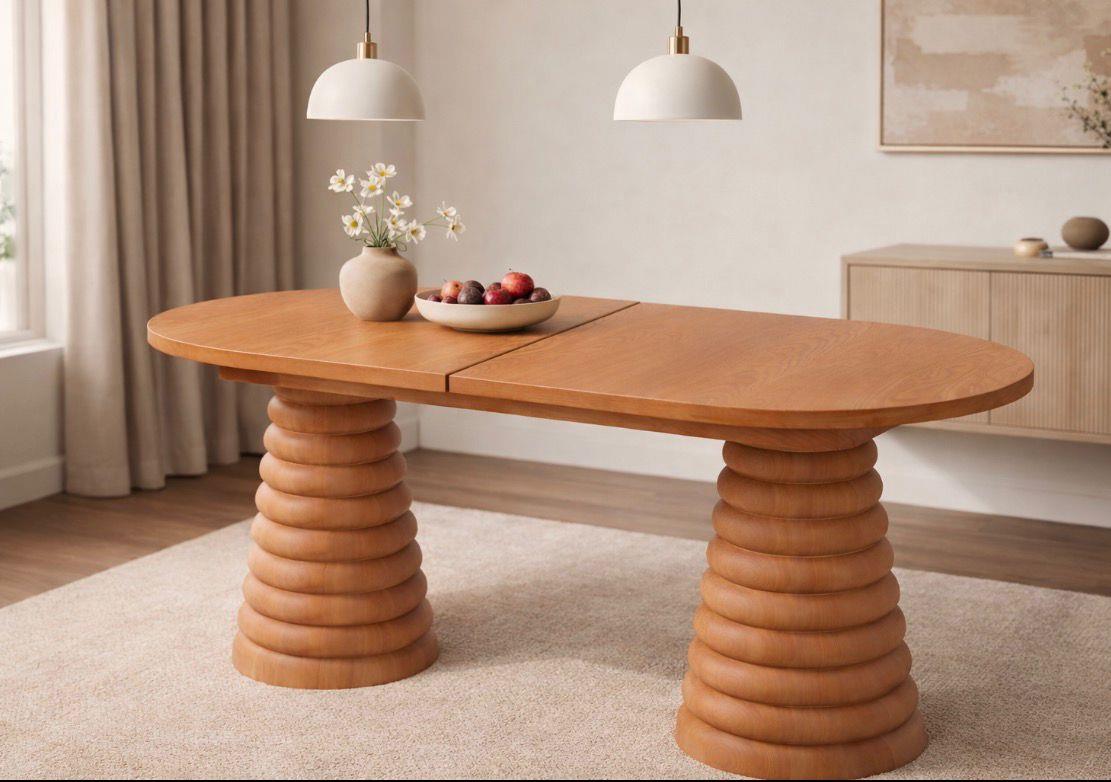 Sağlam ayak yapısı sayesinde sallanma yapmaz, oval kenar geçişleri hem güvenli hem de estetik bir kullanım sağlar. Doğal ahşap dokusu ve özenli işçiliğiyle LUNA RING 160; ahşap sandalye, hazeran sandalye ve sehpa modelleri ile kombinlenerek dengeli bir yemek alanı oluşturur.