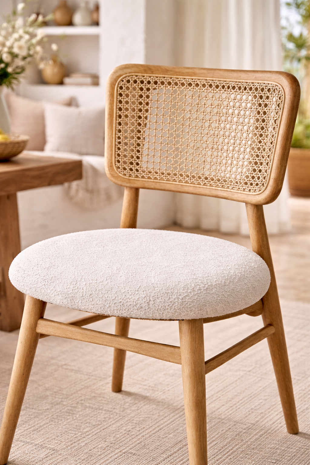Mabel Natural Ahşap Hazeranlı Kayın Sandalye, çok yönlü kullanım imkânı sunar. Ev ortamında yemek masası etrafında doğal ve sade bir atmosfer oluşturur. Mutfak alanlarında ferah yapısı sayesinde alanı daraltmadan uyum sağlar. Kafe ve restoran gibi ticari alanlarda ise hem estetik hem de fonksiyonel bir yemek sandalyesi alternatifi olarak değerlendirilebilir. Hasırlı sandalye yapısı, mekâna sıcak ve davetkâr bir hava katar. Farklı masa tipleriyle kolayca kombinlenebilir.