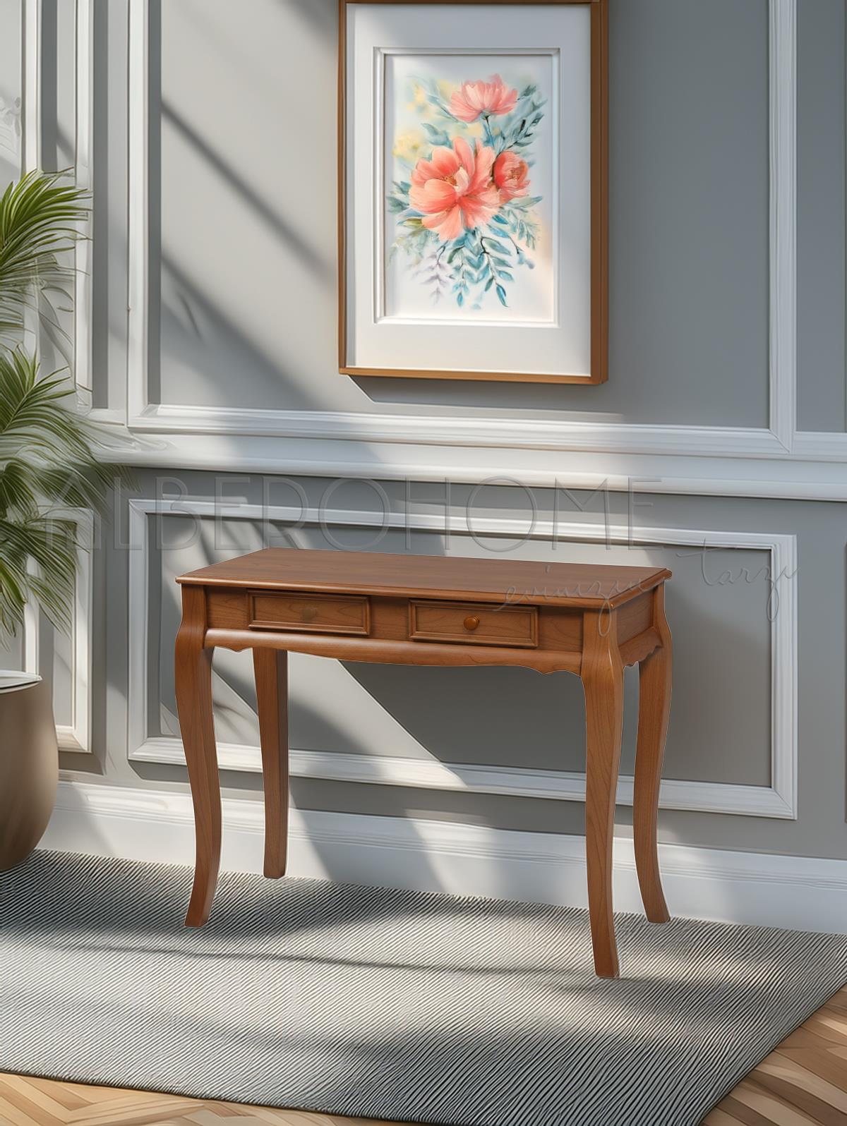 "Nehir" ile Country, İskandinav ve Bohem’in Sade Şıklığı. 1. sınıf doğal ahşaptan üretilen bu çift çekmeceli dresuar, zarif kavisli ayakları ve yalın tasarımıyla öne çıkar. Yüksek standartlardaki el işçiliği kalitesi, uzun ömürlü kullanım sunar. Country ve İskandinav tarzlarının sadeliğini evinize taşır. Antre, koridor veya salonunuzda düzenli ve şık bir karşılama alanı yaratır.