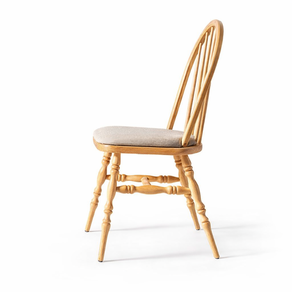 Bu yemek sandalyesi, doğal kayın ağacından üretilmiştir. Kayın ağacı, mobilya üretiminde sıkça tercih edilen, sağlam yapısı ve dengeli lif dokusu ile bilinen bir ahşap türüdür. Doğal yapısı sayesinde hem estetik açıdan hoş bir görünüm sunar hem de uzun süreli kullanıma uygun bir yapı oluşturur.