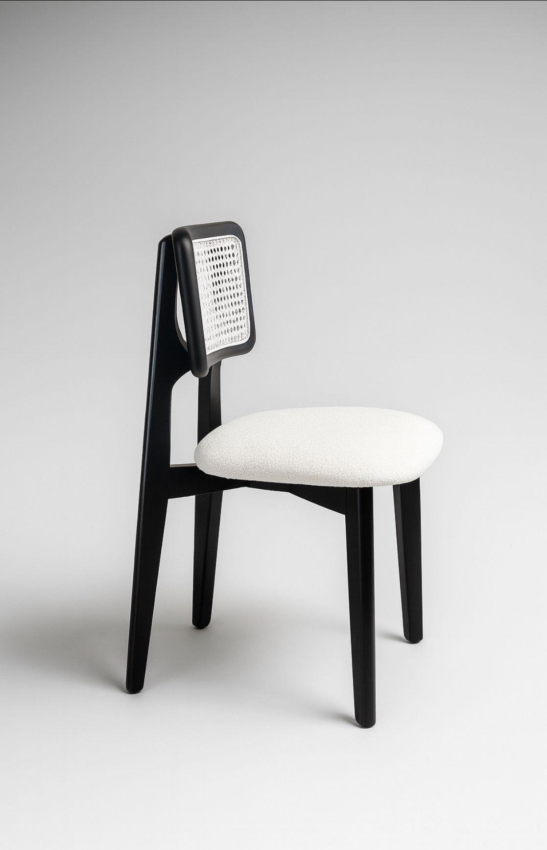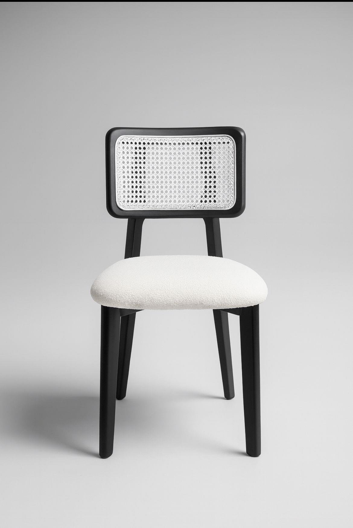 Her detayında el işçiliğinin bulunduğu bu tasarım, yemek odası, mutfak, salon ve kafe gibi birçok alanda şık bir tamamlayıcıdır. Mat siyah tonunun doğal ahşap dokusuyla uyumu, mekâna anında modern bir karakter katar.