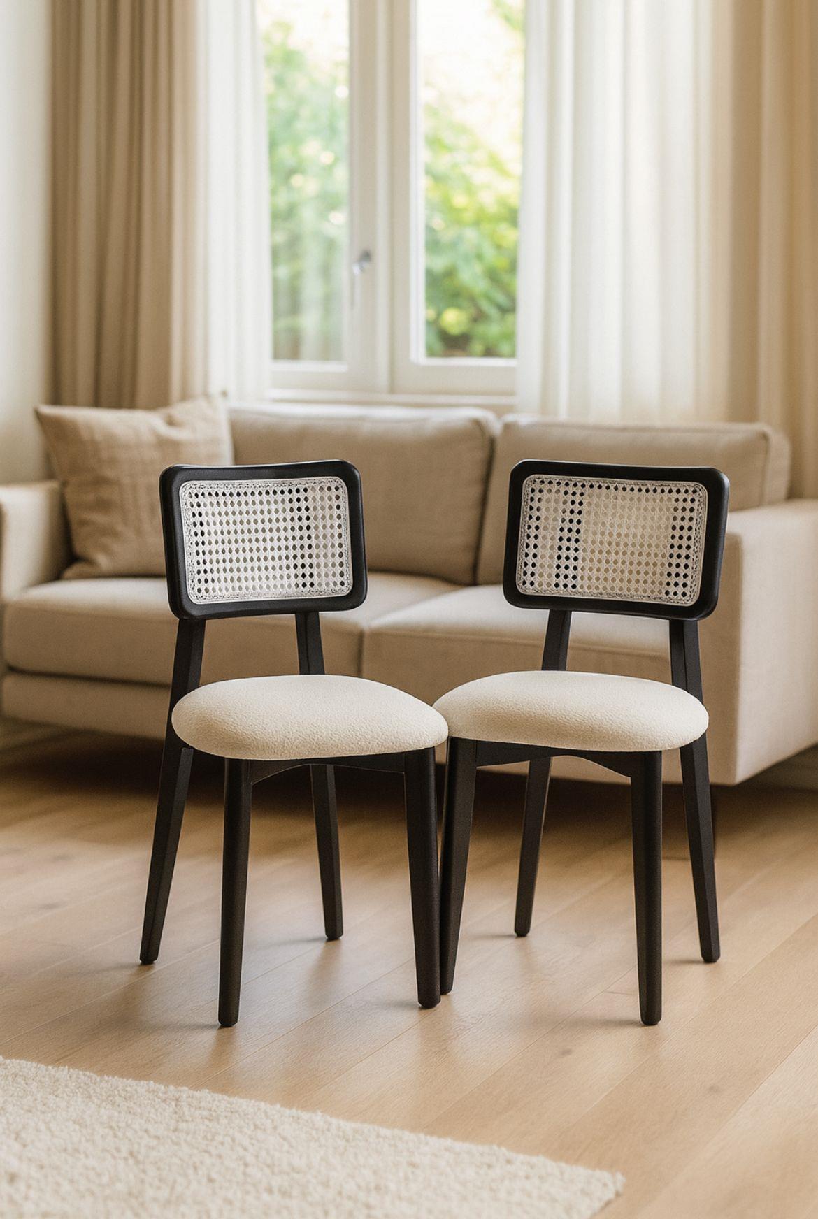 Modern çizgiyi doğal dokuyla buluşturan bu Siyah Hasırlı Ahşap Sandalye 2’li Set, yaşam alanınızda estetik ve konforu aynı anda sunmak için tasarlandı. Gövdesinde kullanılan fırın kurusu kayın ağacı, dayanıklılığı sayesinde uzun yıllar formunu korur. Oturum ve sırt bölümündeki özenle dokunmuş siyah hazeran (hasır) örgü, ürüne hem zarif bir görünüm hem de nefes alan bir oturma konforu kazandırır.