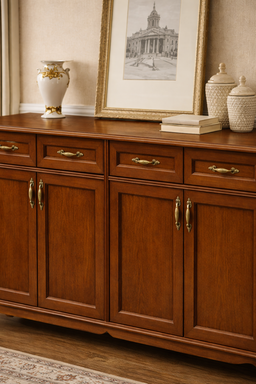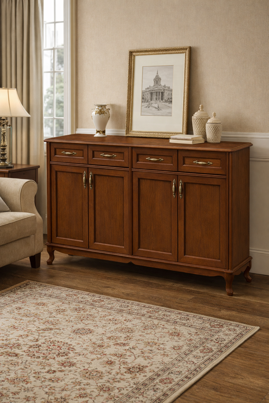 145 cm genişliği sayesinde günlük kullanım eşyaları, servis ürünleri ve dekoratif objeler için ideal bir depolama alanı sunar. Çekmeceler küçük eşyalar için pratik çözüm sağlarken kapaklı bölmeler daha geniş depolama ihtiyaçlarına cevap verir. Konsol, sehpa ve dresuar gibi tamamlayıcı ürünlerle birlikte kullanılarak mekânda bütünlük oluşturabilir.