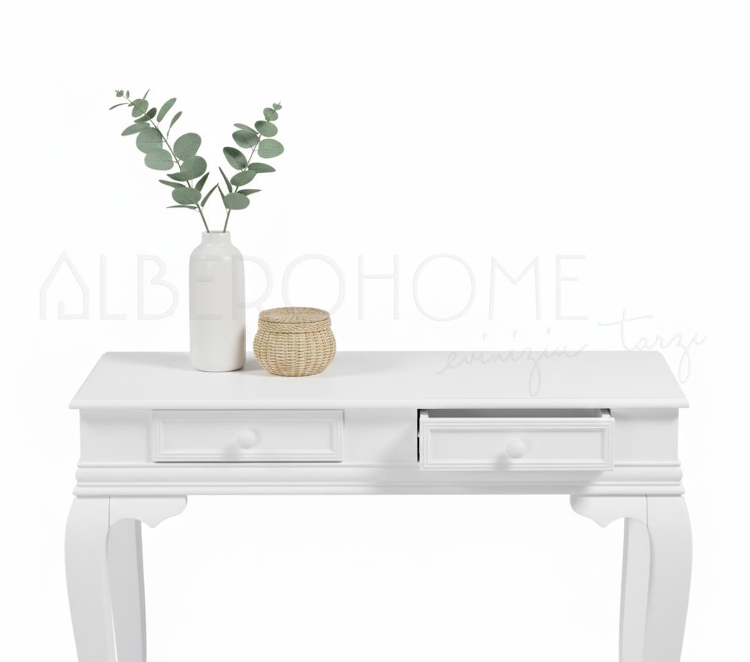 "Bellissima" Beyaz Zarafeti Evlerinize Taşıyor. Klasik çizgileri modern bir sadelikle buluşturan bu zarif dresuar, evinize aydınlık ve ferah bir hava katacak. Oymalı, kavisli ayakları ve şık tek çekmecesi ile hem estetik hem de işlevsel bir depolama alanı sunar. Antrelerinizde, yatak odalarınızda veya salonunuzun bir köşesinde lüks ve sofistike bir dokunuş yaratmak için idealdir. Zamansız tasarımıyla her dekorasyon tarzına kolayca uyum sağlar.