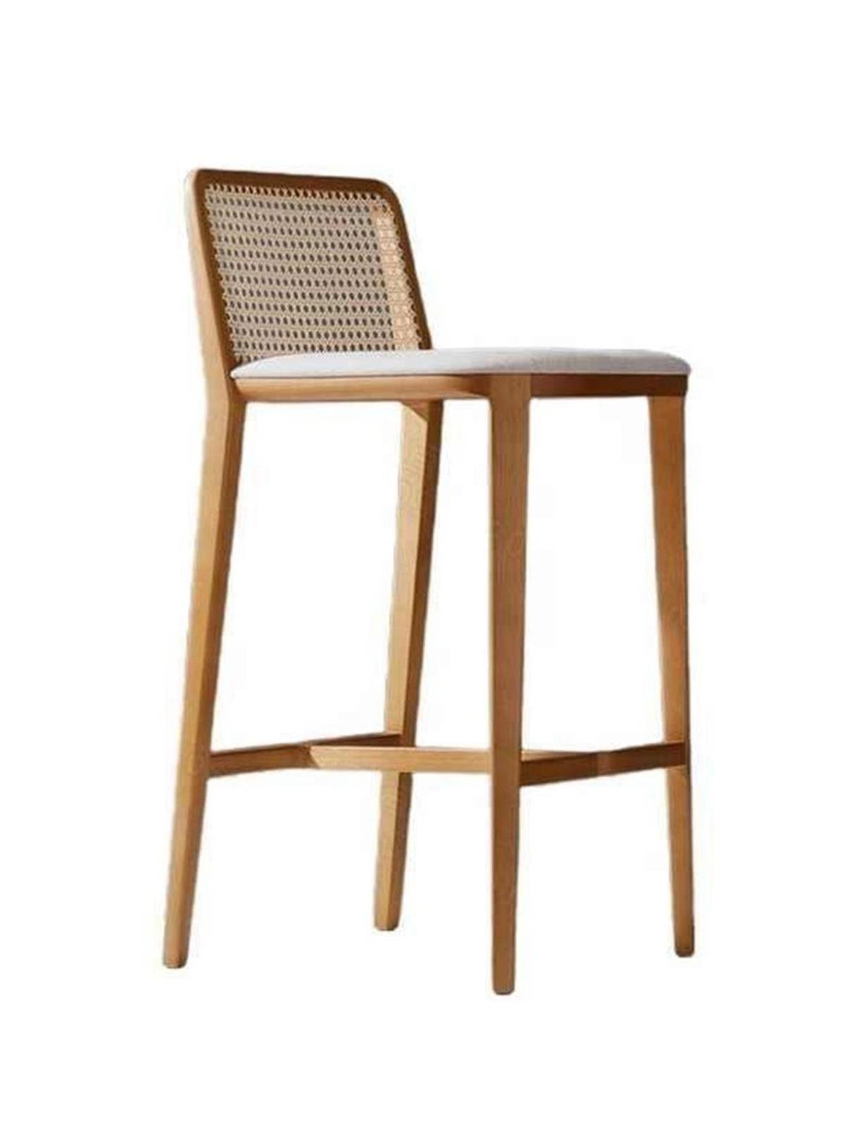 Zarif detaylarıyla öne çıkan bu bar sandalyesi, sağlam gürgen ağacı iskeleti ve doğal rattan sırtlığıyla hem şık hem de dayanıklı bir kullanım sunar. 72 cm oturum yüksekliği sayesinde bar masalarıyla mükemmel uyum sağlar. Doğal dokulu keten kumaşı ise konforu estetikle buluşturur.